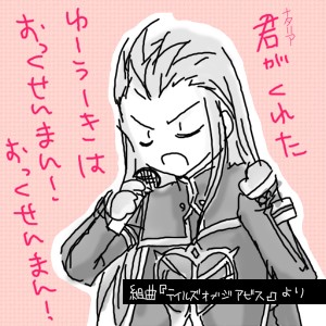 その人の歌詞だと↑のように『君』が『ナタリア』に言い換えられててアッシュらしくて微笑ましかった(笑)