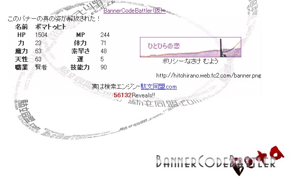 今日はふらりと見つけた駄文同盟さんのとこのバナーコードバトラーで遊んでみました。