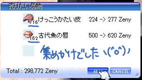 ちょっとお金がなかったので、つい先日シルクハットを購入したせいで不要になった集めかけの材料を売りました。