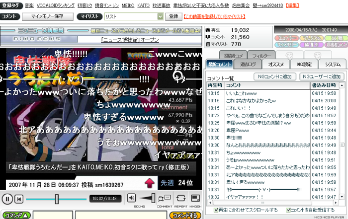 きちめがだとあとは何日か前にランクインしてた鬼畜眼鏡を買った男…だったかな?そんな感じのタイトルの替え歌が秀逸でした。ていうか中盤自重…!