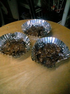 3.適当な大きさに区切って、お弁当のアルミカップとか、もし人に渡すなら可愛い紙カップとかに入れて、冷蔵庫で冷やし固めて完成。
