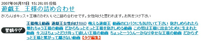 ら、王様萌え動画のタグがすごいことになってたんで思わずキャプってきてしまった。