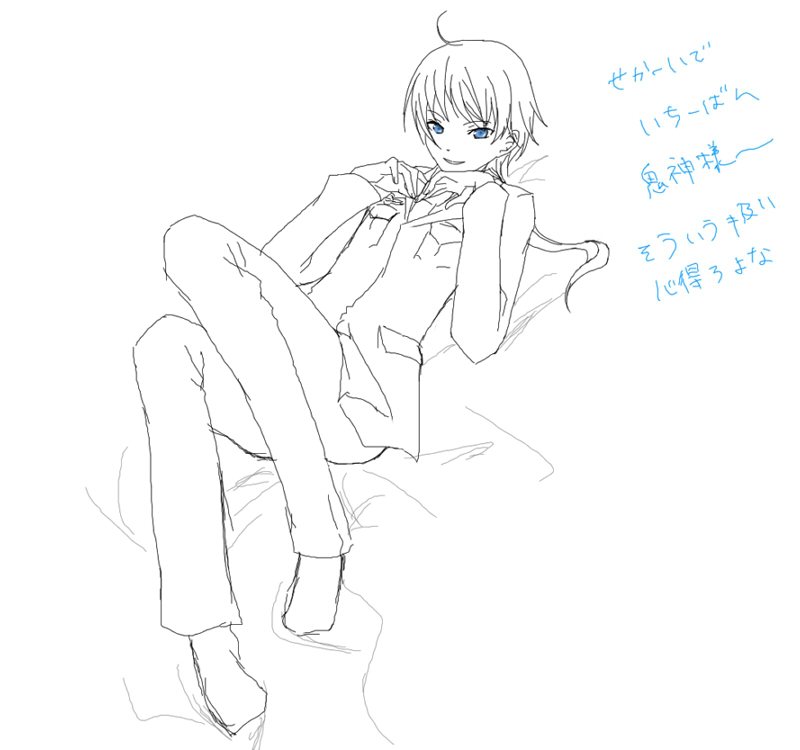 ジャケットとかどうなんだろう、と思って私服も浮かばなかったので、とりあえず軍服着せたんですが…。