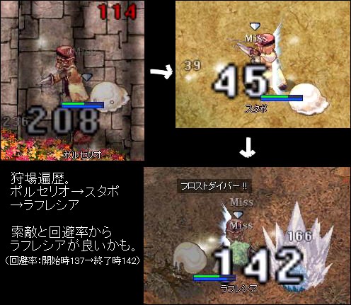 経験値が程良さそうなので、回避が95%いけそうなのを中心にふらりふらりしてきました。