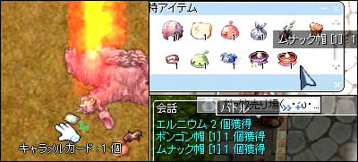 私にしては珍しく、初回でボンゴン帽成功、ムナック帽も成功、と来たのでもう1セットやってみたらやっぱり全部爆発しました\(^o^)/