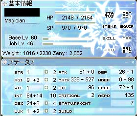 とりあえずDEXはこのくらいで、あとはINTにつぎ込んで目標INT値まで行ってからDEXに振り始めようかなーとか考えてます。