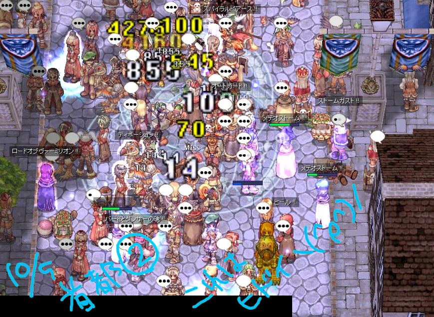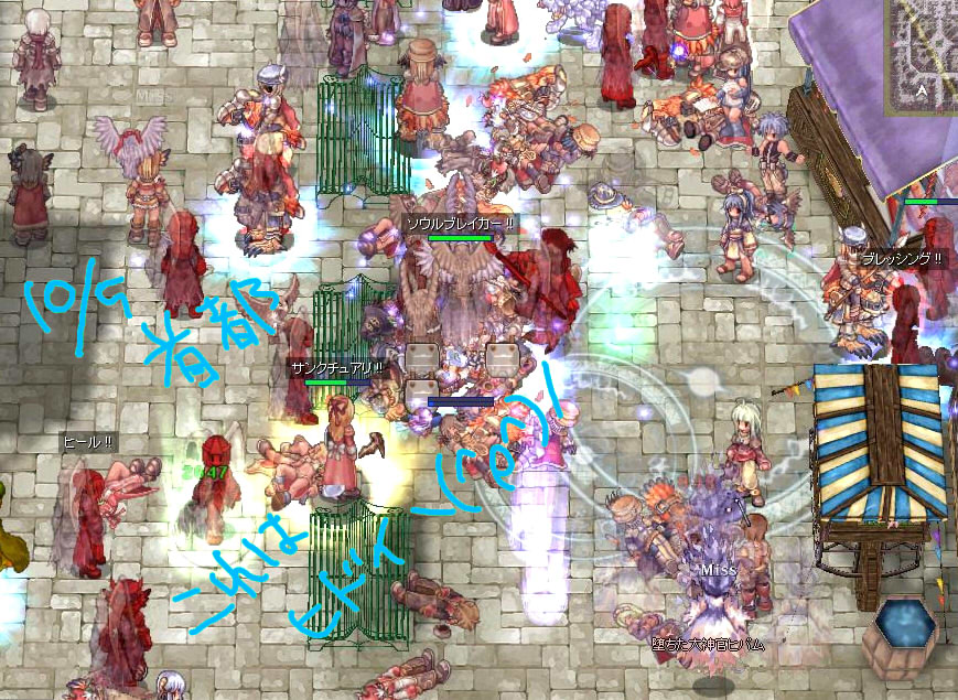 被害は首都中央噴水から下が露店+セーブ復帰ポイント付近全滅といった状況でした。